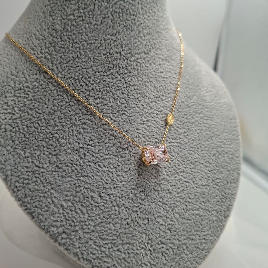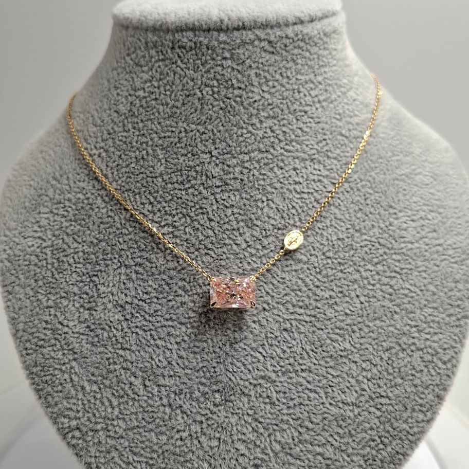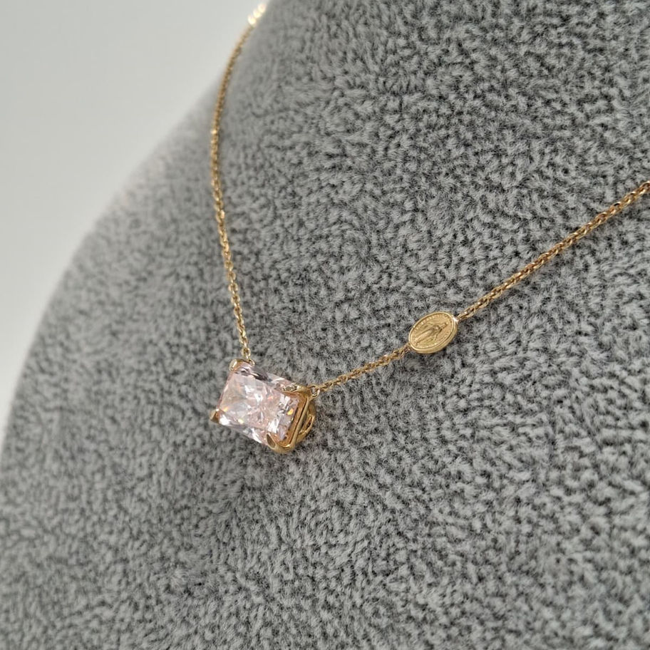 Collana in oro 18 carati con mini Madonnina e diamante rosa lab - grown taglio radiant