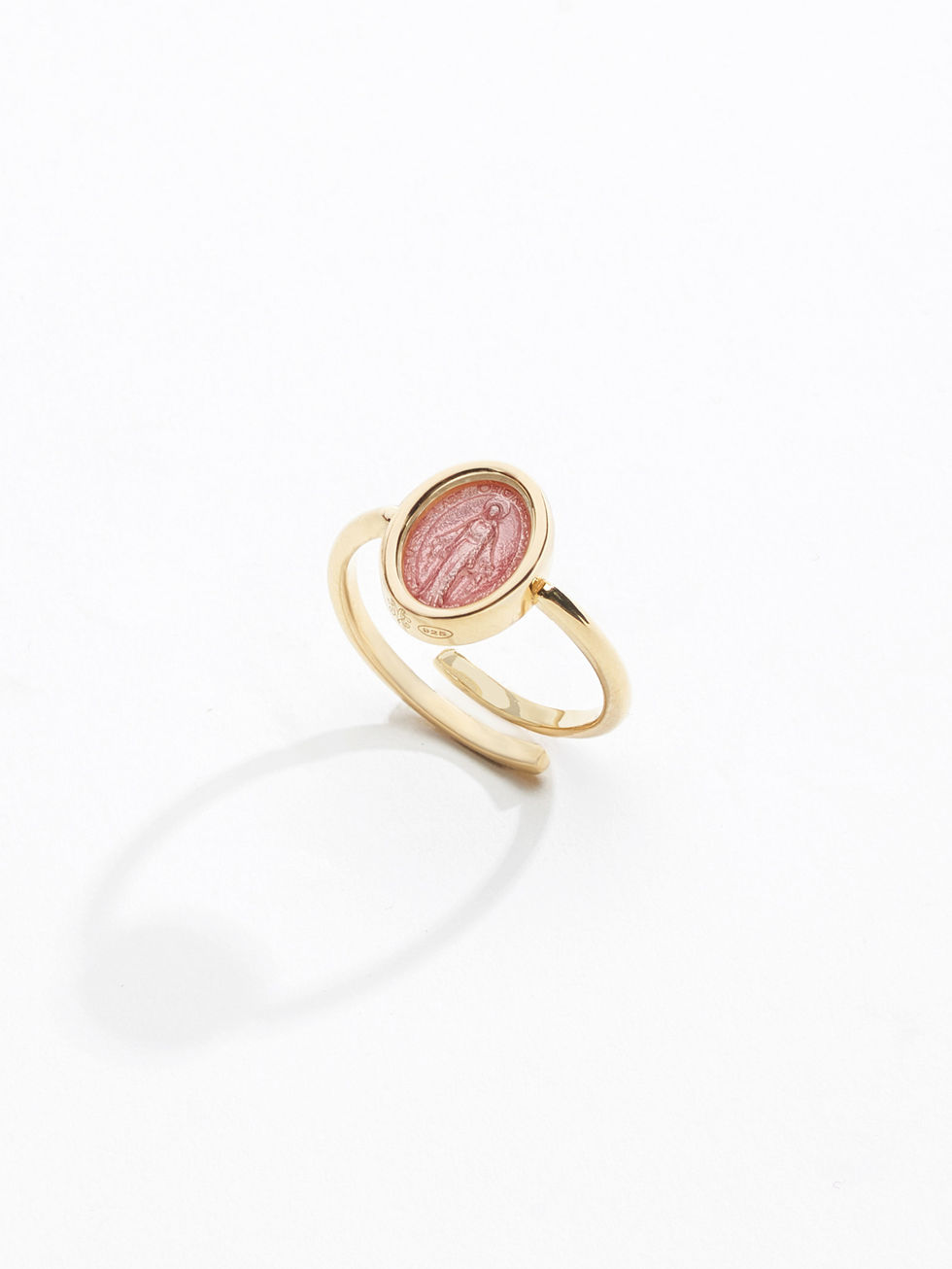 Anello Mini con la medaglia della Madonna Miracolosa realizzato in argento 925 e disponibile in diverse colorazioni della medaglia ed in galvanica bianca, gialla o rosa.
