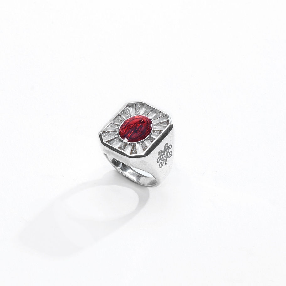 Anello Ottagono in argento 925 con la medaglia della Madonna Miracolosa, disponibile in diversi colori.