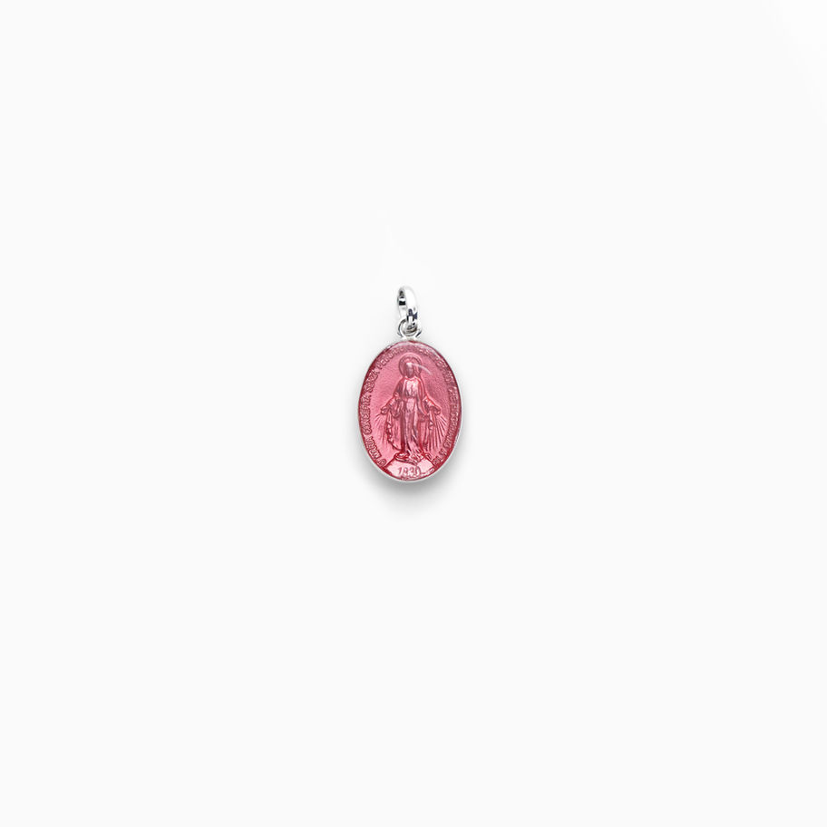 Ciondolo Classico della Madonna Miracolosa senza castone, disponibile in diversi colori e perfetto da utilizzare su una catenina o su un bracciale.