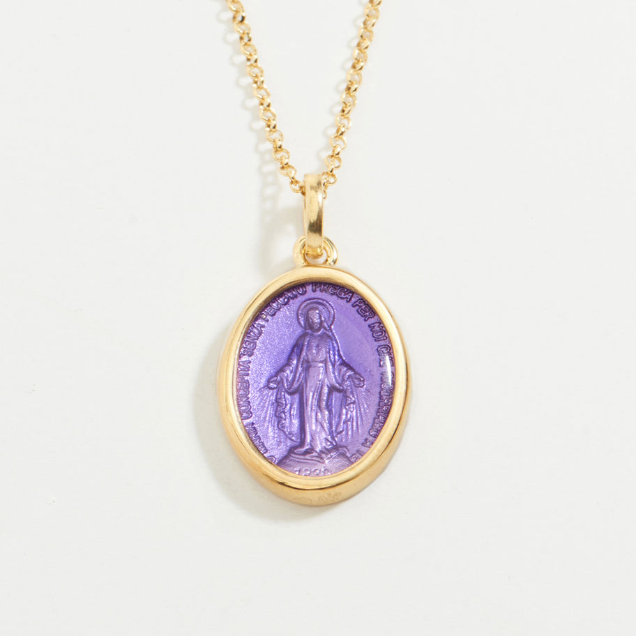 Collana con medaglia della Madonna Miracolosa di Rue du Bac in argento 925 disponibile in diverse colorazioni.