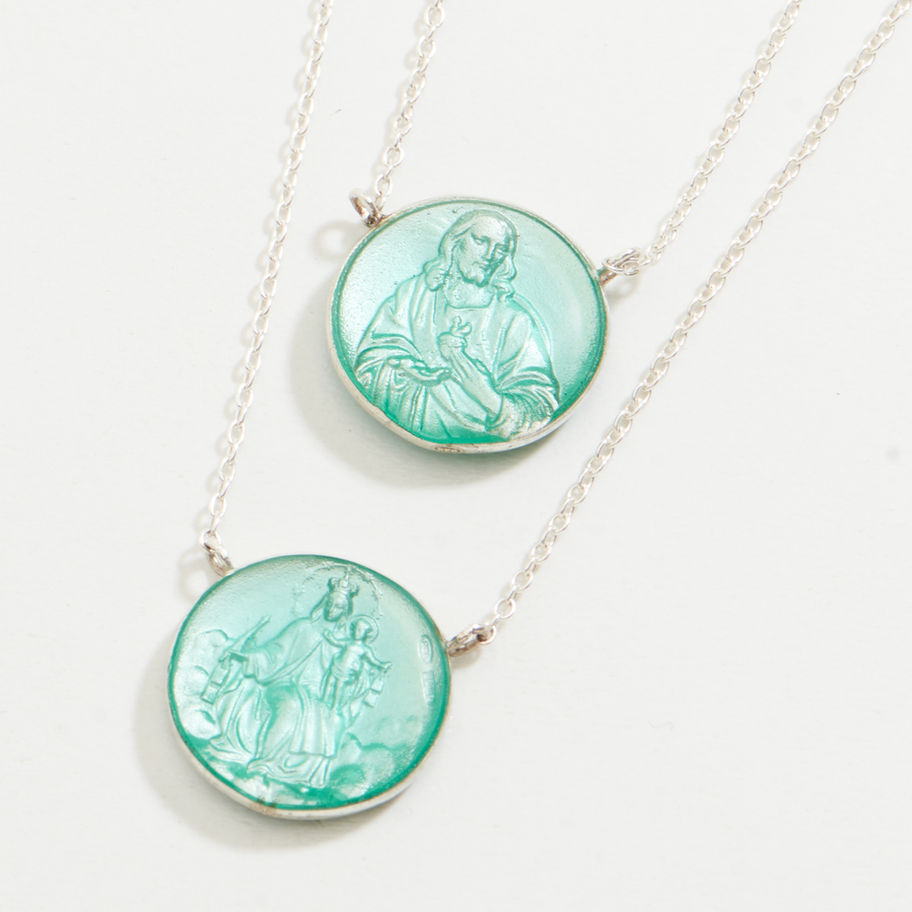 L’Escapulario, nella sua forma originaria, era composto da due rettangoli di tessuto uniti da bretelle, posizionati sulle spalle (scapulae in latino) e lasciati scendere sul corpo. L’origine della parola ‘escapulario’ deriva proprio da questa caratteristica. La collana escapulario rappresenta un forte legame mariano, simboleggiando una speciale devozione alla Madonna. La versione dedicata alla Madonna del Carmelo è spesso donata ai bambini durante la loro prima comunione, diventando un simbolo tangibile di devota devozione alla Madonna del Carmelo. La versione, invece, dedicata al Sacro Cuore di Gesù richiama la spiritualità e la fede cristiana, simboleggiando il conforto divino nel cammino spirituale quotidiano.